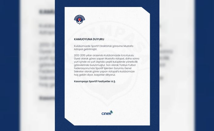 Lacivert-beyazlı kulüpten konuya ilişkin yapılan açıklamada, "Kulübümüzde Sportif Direktörlük görevine Mustafa Aztopal getirilmiştir. 2012-2015 yılları arasında Kulübümüzde İcra Kurulu Üyesi olarak görev yapan Mustafa Aztopal, daha sonra yurt içinde ve yurt dışında çeşitli kulüplerde yöneticilik görevlerinde bulunmuştur. Son olarak Türkiye Futbol Federasyonu’nda Sportif İşlerden Sorumlu Genel Sekreter olarak görev yapan Aztopal’a kulübümüze hoş geldin diyor, başarılar diliyoruz" denildi.