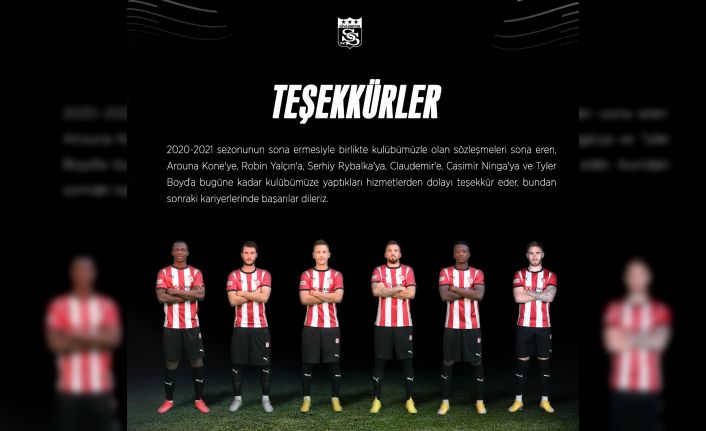 DG Sivasspor, sözleşmeleri sona eren futbolcular Arouna Kone, Robin Yalçın, Serhiy Rybalka, Claudemir, Casimir Ninga ve Tyler Boyd’a teşekkür etti.