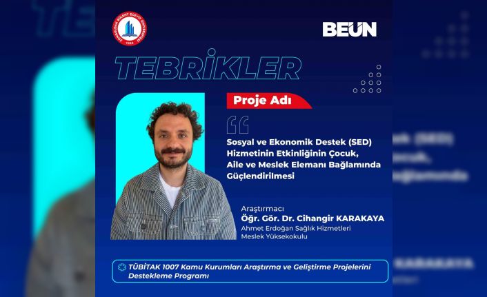 Zonguldak Bülent Ecevit Üniversitesi (BEUN) Ahmet Erdoğan Sağlık Hizmetleri Meslek Yüksekokulu akademisyenlerinden Öğr. Gör. Dr. Cihangir Karakaya’nın araştırmacı olarak yer aldığı "Sosyal ve Ekonomik Destek (SED) Hizmetinin Etkinliğinin Çocuk, Aile ve Meslek Elemanı Bağlamında Güçlendirilmesi" başlıklı proje, TÜBİTAK 1007 kapsamında desteklenmeye layık görüldü.