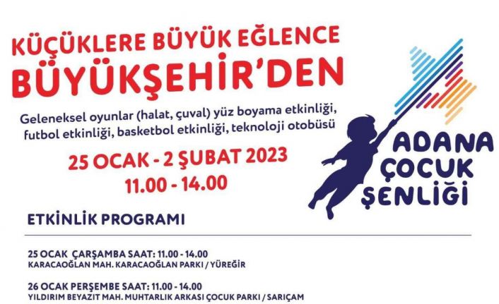Adana Büyükşehir Belediyesince düzenlenen Adana Çocuk Şenliği yarın başlıyor.