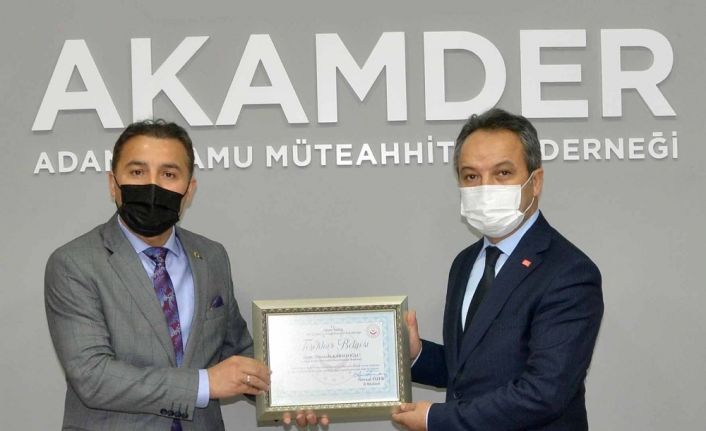 Aile, Çalışma ve Sosyal Hizmetler İl Müdürü Nevzat Özer, Adana Kamu Müteahhitleri Derneği’ne (AKAMDER) katkıları için teşekkür belgesi verdi.