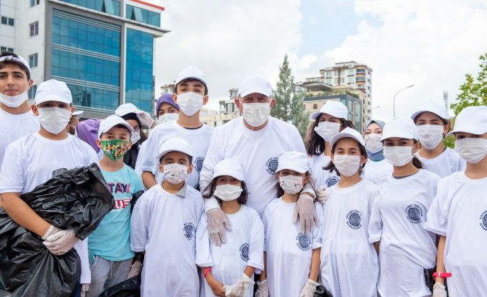 Seyhan Belediye Başkanı Akif Kemal Akay, öğrencilerle birlikte çöp topladı