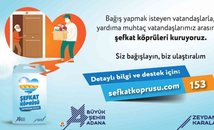 Adana Büyükşehir Belediyesi, Ramazan Ayı dolayısıyla bağış yapmak isteyen vatandaşlarla, yardıma muhtaç vatandaşlar arasında köprü oluyor. Kardeşlik, birlik, beraberlik ve paylaşma ayı olan Ramazan Ayı’nda vatandaşların gerçekleştireceği hayırları, daha hızlı ve güvenli bir şekilde ihtiyaç sahiplerine ulaştırmayı hedefleyen Adana Büyükşehir Belediyesi, yardıma muhtaç vatandaşlarla, onlara yardım etmek isteyen vatandaşlar arasında Şefkat Köprüsü kuruyor.