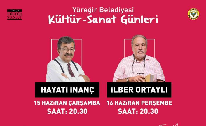Yüreğir Belediyesi Kültür Sanat Günleri, edebiyat dünyasının usta isimlerinden Yazar Hayat İnanç ve ünlü tarihçi Prof. Dr. İlber Ortaylı söyleşileri ile devam ediyor.