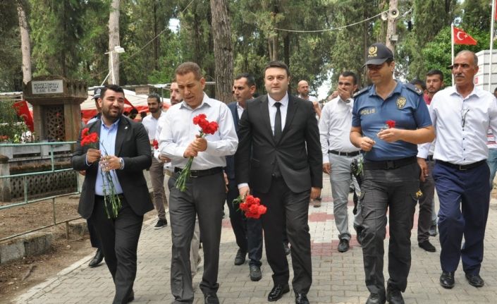 Şehit ve gazilerin anısına rahmet, minnet, sevgi ve saygıyla düzenlenen etkinliklerde ilçe protokolü şehitlerin kabirlerine karanfil bıraktı.