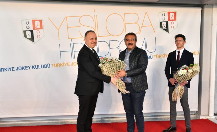 Çukurova Belediyesi Başkanı Soner Çetin, at sahibi Ergutay Özyurteri’ne yarış sonrası çiçek verdi ve kupasını takdim etti.