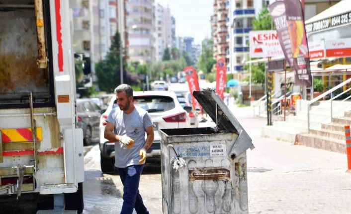 Adana Çukurova Belediyesi Temizlik İşleri Müdürlüğü ekipleri, yaz sıcağında kötü kokuları engellemek, haşere ve mikropların üremesinin önüne geçmek için çöp konteynerlerini ilaçlı su ile periyodik olarak temizlediği ifade edildi.