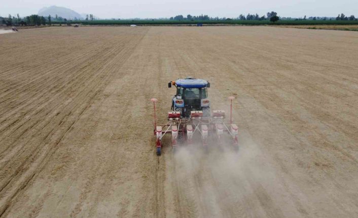 Adana’nın Kozan ilçesinde buğday hasadının ardından ikinci ürün yer fıstığı ekimine başlandı.