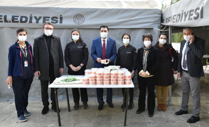 Covid-19 pandemi sürecinde fedakarca çalışan sağlık çalışanlarına desteklerini göstermek adına hazırlanan aşureyi, Okul Müdürü Ayşe Türkoğlu, okul idarecileri ve yiyecek içecek hizmetleri bölümü öğretmenleri, İl Milli Eğitim Müdürlüğü Mesleki ve Teknik Eğitimden Sorumlu Şube Müdürü Saffet Sarıdağ, Seyhan İlçe Milli Eğitim Şube Müdürü Hakan Üstün ile birlikte sağlık çalışanlarına dağıtıldı.