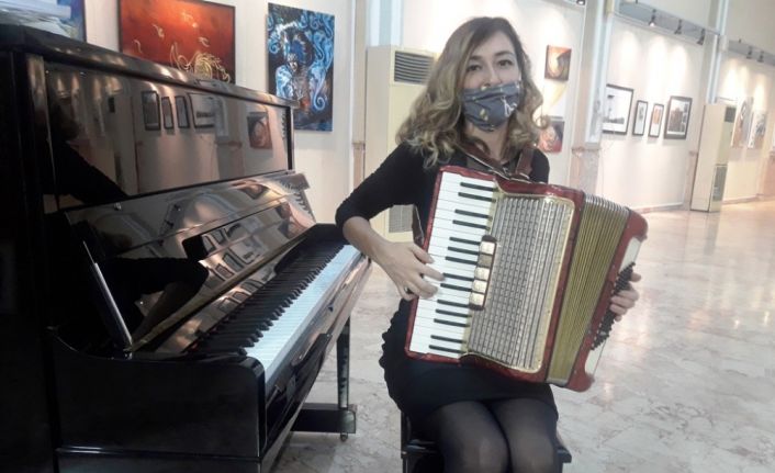 Adana Büyükşehir Belediyesi Konservatuar Hocası Sencan Laçinbala da sergide ziyaretçilere akardiyon ve piyano ile resital verdi.