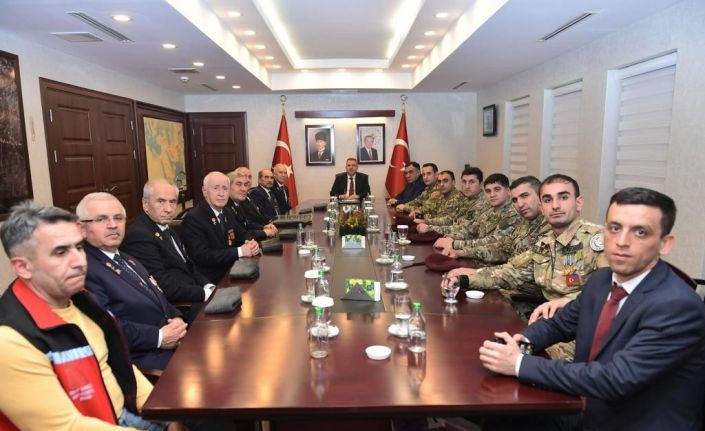 Azerbaycan Askeri Dernekler Federasyonu Başkanı Emin Hasanlı ve Azeri gazilerin de iştirak ettiği ziyarette misafirleriyle sohbet eden Vali Elban, “Azerbaycanlı kardeşlerimizin de bugün aramızda olması çok anlamlı. Hepiniz ilimize hoş geldiniz. Tek millet, iki devlet olan Türkiye Azerbaycan dostluğu önceden olduğu gibi bundan sonra da ilelebet devam edecektir” dedi.