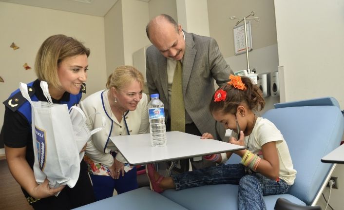 Adana Emniyet Müdürü Zafer Aktaş, eşi Meryem Aktaş ile birlikte Adana Şehir Hastanesi Onkoloji servisinde tedavi gören hastaları ziyaret ederek moral verdi.