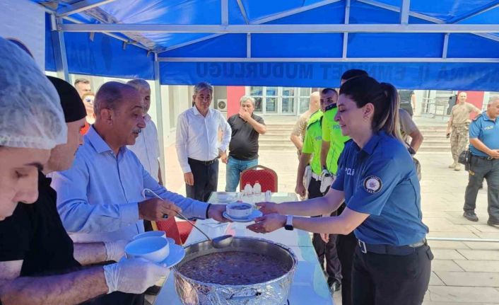 Adana İl Emniyet Müdürü Doğan İnci, Muharrem Ayı nedeniyle hazırlanan aşureyi kazan başına geçip personele tek tek dağıttı.