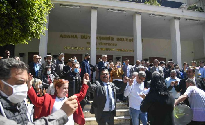 Toplu İş Sözleşmesi’nin imzalanmasının ardından çalışanlar Adana Büyükşehir Belediyesi önünde halay çekti, kutlama yaptı.
