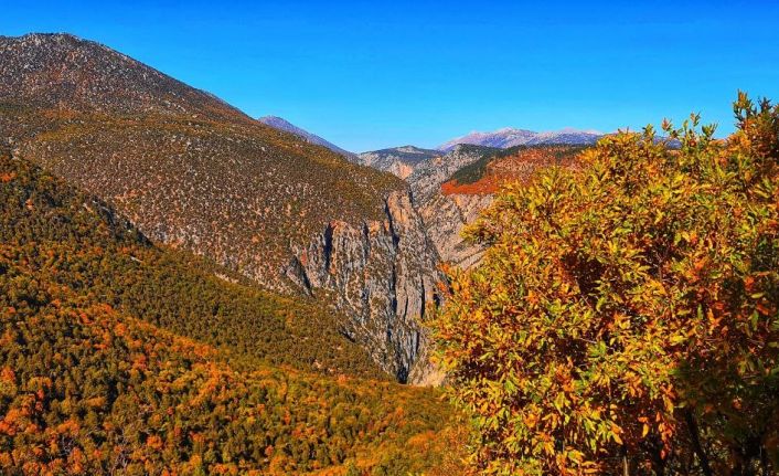 Adana’nın Saimbeyli ilçesinden Kahramanmaraş’ın Göksun ilçesine kadar 18 kilometre uzunluğundaki doğa tutkunlarının rotasında yer alan Hançer Kanyonu sonbaharda renk cümbüşü ile görenleri kendine hayran bıraktı.