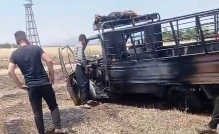 Adana’da saman balyası toplamak için tarlaya sokulan kamyonet, lastik kısmından alev alarak küle döndü.