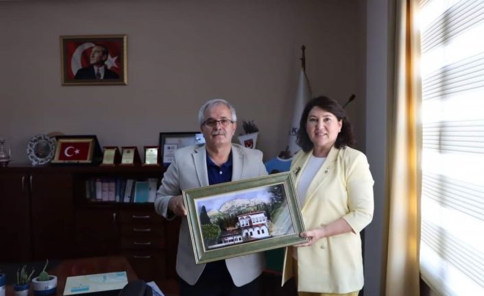 Başkan Özgan, Karamık’a, Kozan Belediyesi Sosyal Yaşam Merkezi’nde hazırlanan Arıkan Konağı’nın rölyef tablosunu hediye etti.