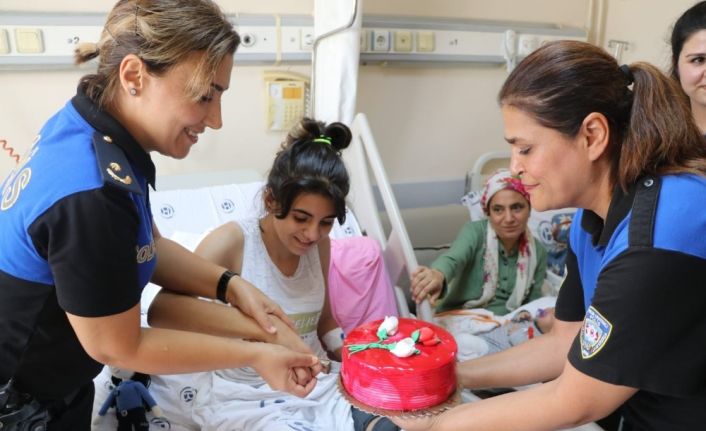 Polisler, Eylül’ün doğum gününü hastanede kutladı
