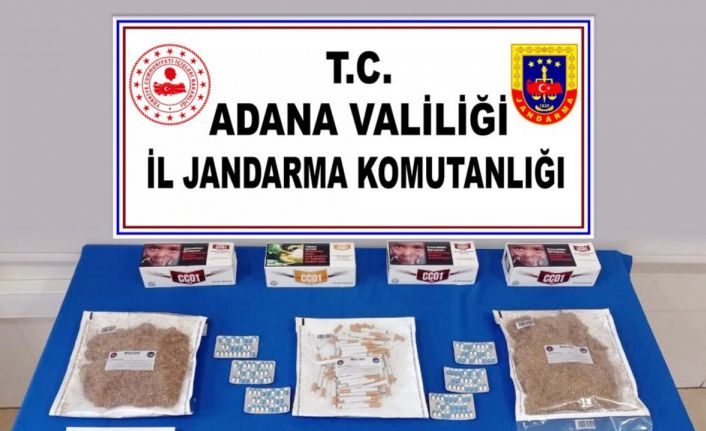 Adana İl Jandarma Komutanlığı ekiplerince, ilçeye bağlı Kamışlı Mahallesinde ikamet eden M.Y. isimli şahsın uyuşturucu madde satacağı bilgisinin alınması üzerine adli makamlardan alınan karara istinaden şahsın evinde arama yapıldı. Aramada, 1 kilo 279 gram sentetik cannabinoid (bonzai) 150 adet hap, 5 gram metamfetamin, 6 gram toz esrar maddesi, 800 adet makaron, 3 adet uyuşturucu kullanma aparatı ele geçirildi.