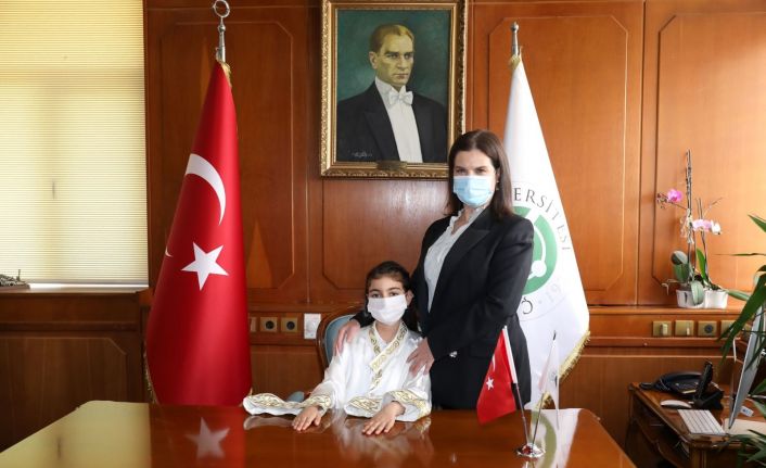 Çukurova Üniversitesi Prof. Dr. Meryem Tuncel, 23 Nisan Ulusal Egemenlik ve Çocuk Bayramı nedeniyle koltuğunu üç kız çocuğuna devretti. “Bu özel günde tüm çocuklarımızı sevgi ile kucaklıyorum” diyen Prof. Dr. Tuncel, çocukların barış dolu bir dünyada yaşamaları ve sağlıklı, mutlu bir gelecekleri olması temennisinde bulundu.