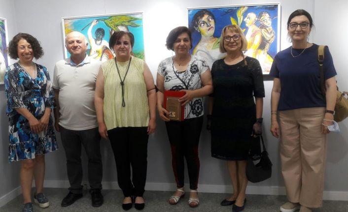 Şerife Ballı’ya Çukurova Üniversitesi Öğretim Üyesi Meltem Gökmen’in açtığı resim sergisinde ARD Derneği Başkanı Hüseyin Yılmaz, ve yönetim kurulu tarafından plaket verdi.