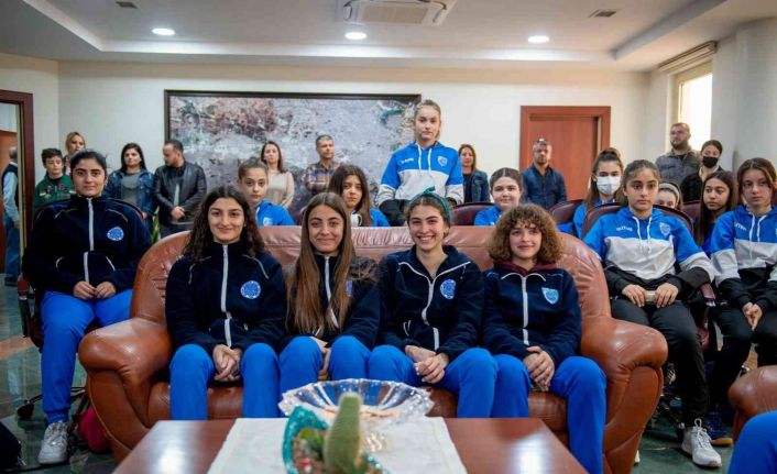 Şampiyon voleybolcu kızlardan Başkan Akay’a kupalı teşekkür