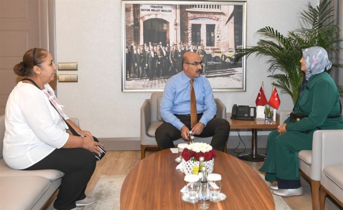 Piyade Uzman Çavuş Talat Bildirici’nin annesi Müzeyyen Bildirici, şehit polis memurları Yunus Uğur’un babası Ramazan Uğur, Serkan Ağca’nın annesi Gülhan Ağca, Şehit Piyade Uzman Çavuşlar Murat Demirci’nin babası Cumali Demirci ile Selçuk Beki’nin eşi Zeynep Beki, Vali Mahmut Demirtaş’ı makamında ziyaret etti.
