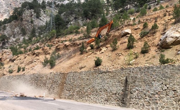 Saimbeyli ilçesi sınırlarında dağ yamaçlarından düşen kayaların bir araca isabet etmesinin ardından bölgedeki tehlikeli noktalar belirlendi. Belirlenen noktalardan orman sahasındaki bölgede depremler ve aşırı yağmurlar nedeniyle tehlike arz eden kaya ve taşlar, Karayolları 5.Bölge Müdürlüğü tarafından kontrollü şekilde düşürülüp temizleniyor.