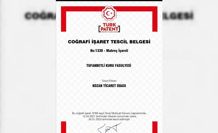 Adana Kozan Ticaret Odası’nın girişimleriyle Tufanbeyli fasulyesi coğrafi işaret tescil belgesi aldı.