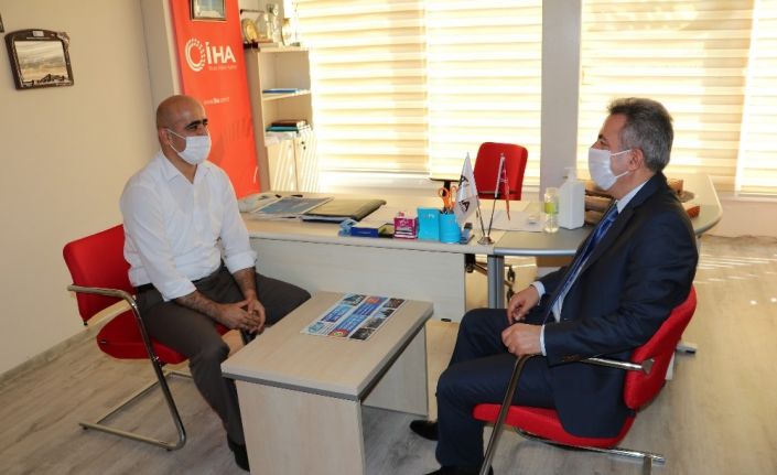 İhlas Haber Ajansı’na iade-i ziyarette bulunan Vali Elban, Bölge Müdürü Adnan Kulak ile görüşerek ajansın faaliyetleri hakkında bilgi aldı.