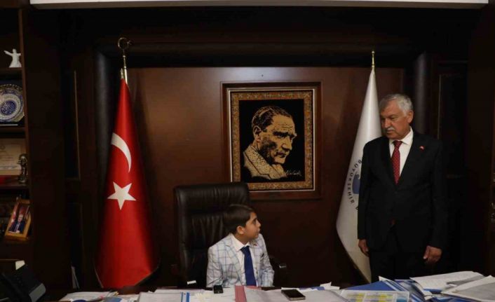 23 Nisan Ulusal Egemenlik ve Çocuk Bayramı nedeniyle Adana Büyükşehir Belediye Başkanlığı makamına 4. sınıf öğrencisi Mehmet Cafri oturdu.