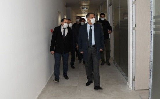 Vali Mahmut Çuhadar, seramik zemin kat, asma tavan ve dış cephe mantolama işleri tamamlanan projenin, mekanik, elektrik ve dış cephe kaplama işlerinde sona gelinen hizmet binasını gezerek, devam eden çalışmalarla ilgili bilgiler aldı.