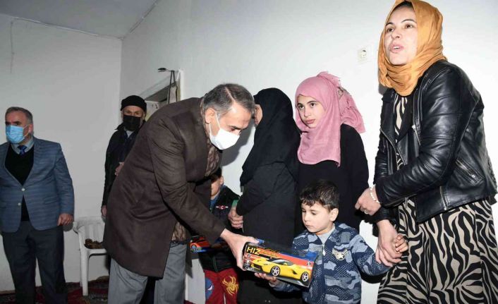 Kerkük Türkmenlerinden İsmail Bayatı ve ailesini yeni evinde ziyaret eden Vali Mahmut Çuhadar, Bayatı Ailesiyle bir süre görüşerek, çocuklara oyuncak ve çeşitli hediyeler verdi.