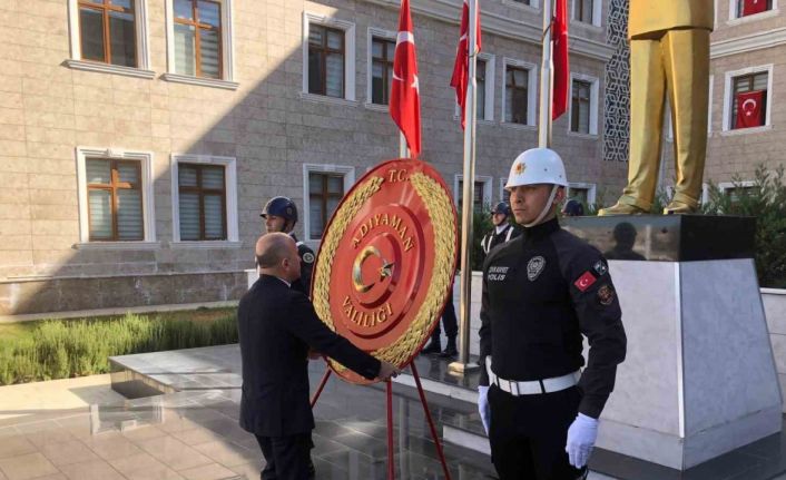 Adıyaman’da 29 Ekim Cumhuriyet Bayramı kutlamaları valilik bahçesinde çelenk sunma töreniyle başladı.