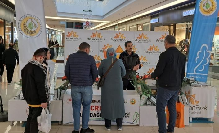Türkiye’nin yüzyılında geleceğe nefes olmak için ’Ağaç kesme fidan dik’ sloganı ile yola çıkan Adıyaman İl Orman İşletme Müdürlüğü birkaç gün önce Demokrasi Parkı önünde dağıttığı 10 bin adet fidanın yanı sıra kent merkezinde bulunan bir alışveriş merkezinde de fidan dağıttı. 4 Bin adet zeytin, badem, servi ve fıstık çamı dağıtan orman müdürlüğü personellerine İl Orman İşletme Müdürlüğü Ağaçlandırma Şefi Mustafa Göksu’da eşlik etti. Vatandaşlar tarafından yoğun ilginin gördüğü fidan dağıtım standında küçük çocuklar için de çeşitli hediyeler verildi. Daha yeşil bir Adıyaman ve Türkiye için bu tür etkinliklere devam edeceklerini belirten yetkililer, ağaçlandırmanın ve doğanın öneminden de bahsetti.