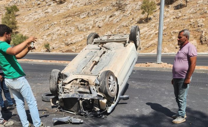 Adıyaman’da, sürücüsünün direksiyon hakimiyetini kaybettiği kazada otomobil takla atarak ters döndü.