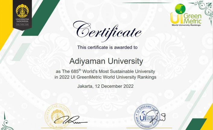 Adıyaman Üniversitesi (ADYÜ), üniversitelerin bir önceki eğitim-öğretim döneminde yaptıkları çalışmaları temel alarak oluşturulan GreenMetric Dünya Üniversite Sıralamaları (GreenMetric Ranking of Universities) Aralık 2022 raporuna göre sıralamada üst sıralara yüksekldi.