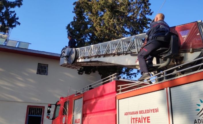 Adıyaman Açık Ceza İnfaz Kurumu bahçesinde bulunan çam ağacı üzerinde bir kedinin mahsur kaldığını fark eden cezaevi görevlileri, durumu itfaiye ekiplerine bildirdi. Olay yerine gelen itfaiye ekiplerinin çalışmaları sonucunda kedi, mahsur kaldığı yerden indirildi. İtfaiye görevlileri tarafından kurtarılan kedi daha sonra serbest bırakıldı.