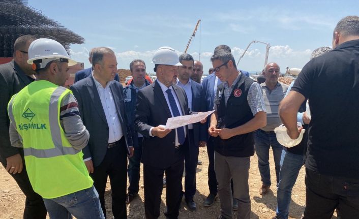 AK Parti Adıyaman İl Başkanı Emrah Bulucu ve beraberindeki heyet, depremzedeler için yapımına başlanılan deprem konutlarının inşaat alanında incelemelerde bulundu.