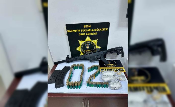 Edinilen bilgilere göre, Besni Narkotik Suçlarla Mücadele Büro Amirliği ekiplerince durumundan şüphelenilerek durdurulan bir otomobilde arama yapıldı. Gerçekleştirilen aramalarda aracın alt kısımlarına zulalanmış 126.75 gram metamfetamin maddesi, 18.22 gram gelen sentetik kannobinoid ham maddesi, 1 adet av tüfeği, 2 adet şarjör ve 66 adet kartuş fişek ele geçirildi. Ele geçirilen malzemeler muhafaza altına alınırken konuyla ilgili olarak araçta bulunan N.K, T.A, A.A ve S.K. isimli şahıslar gözaltına alındı. Emniyete götürülen ve burada işlemleri tamamlanan şahıslar daha sonra adli makamlara sevk edildi. Şahıslardan S.K., isimli şahıs adli makamlarca tutuklanarak cezaevine gönderilirken N.K, T.A, ve A.A. serbest bırakıldı.
