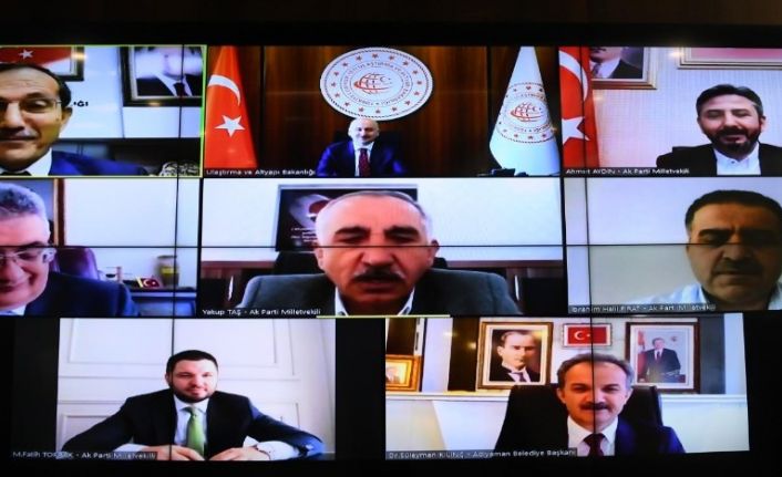 Ulaştırma ve Altyapı Bakanı Adil Karaismailoğlu başkanlığında, ulaştırma ve altyapı bakan yardımcıları, Adıyaman valisi Aykut Pekmez, AK Parti Genel Merkez Disiplin Kurulu Başkanı ve Adıyaman Milletvekili Ahmet Aydın, İbrahim Halil Fırat, Yakup Taş, Muhammet Fatih Toprak, AK Parti İl Başkanı Mehmet Dağtekin, Belediye Başkanı Süleyman Kılınç ve bakanlık bürokratlarının katılımıyla bir toplantı gerçekleştirildi. Video konferans yöntemi ile gerçekleştirilen toplantıda Adıyaman’da ki devlet ve il yolu statüsündeki karayolları, köy grup yolları, ulaşım altyapı ile ilgili devam eden yatırımlar, yeni yatırımlar, havayolu, PTT ve telekomünikasyon hizmetlerinin genel durumu değerlendirildi. Adıyaman heyetinin Bakan Karaismailoğlu’na görüş ve taleplerini ilettiği toplantıda başta Altınşehir Mahallesinde devam eden köprülü kavşak inşaat çalışmalarının hızlandırılması, Kuzey Çevre Yolu projesi ile Gölbaşı-Adıyaman-Kahta Hızlı Tren Projesinin hayata geçirilmesine yönelik konular masaya yatırıldı. Bu bağlamda Narince-Gerger yolunun yatırım programına alınması, Nissibi Köprüsü Bağlantı Yolu, Gölbaşı-Adıyaman- Kahta karayolu, Besni Viyadüğü dahil Besni-Araban-Gaziantep karayolu çalışmalarında kalan 7 kilometrelik yolun tamamlanması, Gölbaşı-Adıyaman yol ayrımındaki 10.3 kilometrelik Besni yolu ve Burunçayır köyü yolunun yapılması, Malatya-Darende yol ayrımından itibaren 47.8 kilometrelik yolun yapılması, 21.6 kilometrelik Akıncılar yolunun yapılması, Düzce , Kömür, Pınaryayla, İnlice beldelerini birbirine bağlayan 33 kilometrelik grup yolunun karayolları gurubuna alınması, yine 29 kilometrelik Çimento fabrikası, Yeniköy, Yaylımlı ve Tut ilçesi grup yolunun Karayollarına bağlanması, Kahta-Siverek devlet yolu sınırı yol ayrımında bulunan Pamuklar, Kesertaş ve Gerger ilçesini kapsayan 30 kilometrelik grup yolun Karayollarına bağlanması, Kahramanmaraş-Çağlayancerit sınırında yer alan Yeşiova mevkiinde 28 kilometrelik köy grup yolunun Karayollarına dahil edilmesi, Gölbaşı-Harmanlı arasındaki 8 kilometrelik yolun genişletilmesi, Besni Beşyol güzergahında 35 köyü birbirine bağlayan 28 kilometrelik yolun Karayollarına bağlanması, Sincik, Çatbahçe, Dilektepe, Hasanlı, Çamdere, İnlice, Çelikhan grup yollarının Karayollarına dahil edilmesi, Tut ilçesinde yol kaymasının önlenmesi, Göksuçayı Köprüsündeki taşıyıcı kolonların tehlike arz etmesinden dolayı yolun Börgenek köyü yakınlarından şehre bağlanması, rojesi hazır olan ve tamamlandığında 36 kilometrelik yolu 16 kilometrelik düşürecek olan Adıyaman-Çelikhan yolunun yatırım programına alınması gibi görüşler ve öneriler Ulaştırma ve Altyapı Bakanı Adil Karaismailoğlu’na aktarıldı. Toplantının bir bölümünde ise tüm bakanlıklarda bilim kurulunun oluşturulması önerisi sunuldu. Adıyaman heyetinden gelen talep ve önerileri tek tek not alan Ulaştırma ve Altyapı Bakanı Adil Karaismailoğlu, Adıyaman’ın sorunların en kısa sürede çözüleceğinin sözünü verdi.