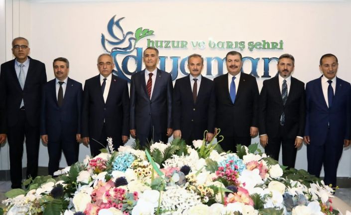Adıyaman Belediye Başkanı Süleyman Kılınç, belediye meclis üyeleri, belediye başkan yarımcıları ve birim müdürleri tarafından kapıda karşılanan Bakan Koca’ya, Milli Savunma Komisyon Başkanı ve AK Parti Adıyaman Milletvekili Ahmet Aydın, Adıyaman Valisi Mahmut Çuhadar, Adıyaman Üniversitesi Rektörü Prof. Dr. Mehmet Turgut, Adıyaman İl Sağlık Müdürü Uzm. Dr. Erdoğan Öz, AK Parti İl Başkanı Mehmet Dağtekin ile AK Parti Merkez ilçe Başkanı Mustafa Alkayış eşlik etti. Belediye başkanlığı makamında gerçekleşen ziyarette şeref defterini imzalayan Bakan Koca, kendisi gibi hekim olan Başkan Kılınç’ı yaptığı başarılı çalışmalardan dolayı tebrik etti.