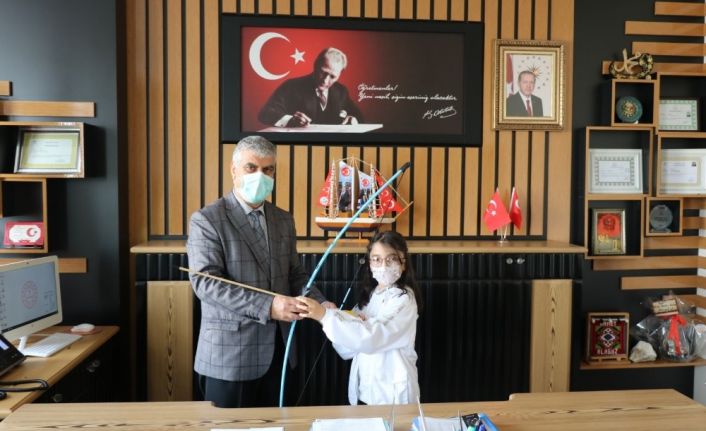 Milli Eğitim Bakanı Ziya Selçuk’un, Adıyaman’ın Gerger ilçesindeki öğrenciye gönderdiği ok yay takımı teslim edildi.