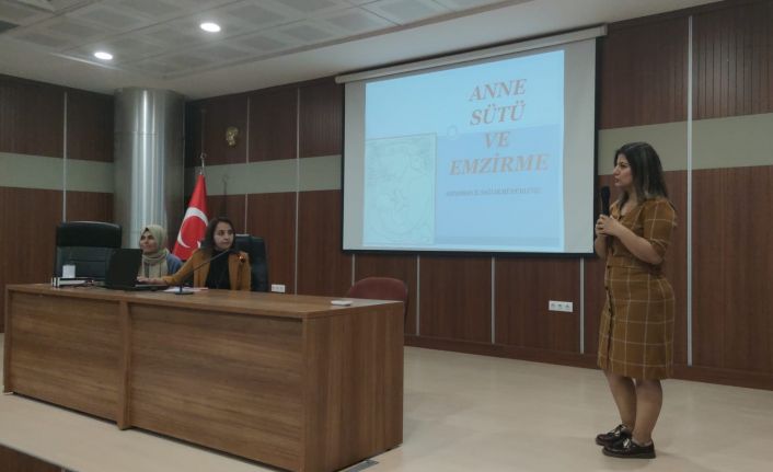 Sağlık Müdürlüğü Halk Sağlığı Başkanlığı adına Fatma Boybay, Adıyaman Adli Destek ve Mağdur Hizmetleri Müdürlüğü adına Gülüzar Çelik ve Nida Kayğusuz tarafından anne sütünün önemi ve emzirme konusunda eğitim verildi.