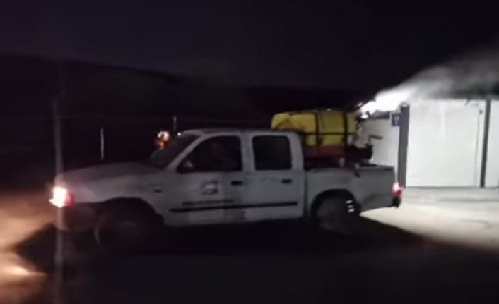 Adıyaman’ın Gölbaşı Belediyesi ekipleri konteyner kentlerde ilaçlama yapıyor.