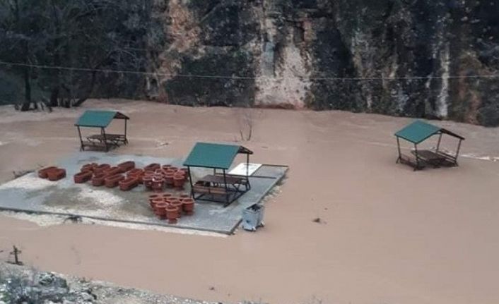 Şiddetli yağış nedeniyle Adıyaman’ın Besni ilçesinde bulunan Su Gözü Mesire alanında bulunan dere taştı, piknik alanı sular altında kaldı.