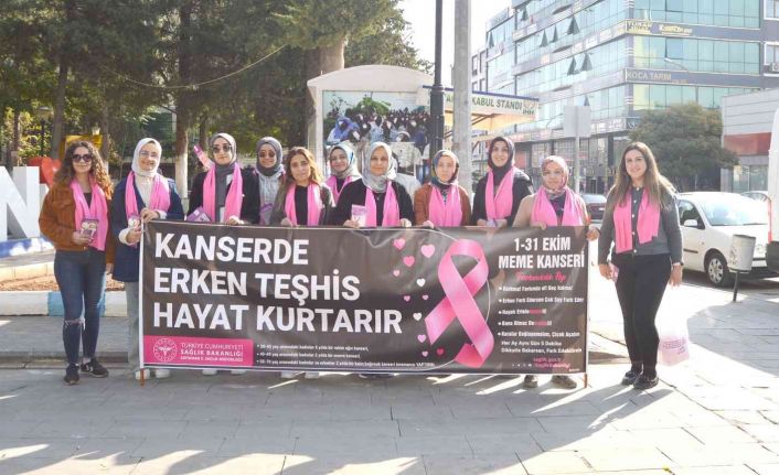 Adıyaman’ın Besni ilçe Sağlık Müdürlüğü tarafından hastane personelleri, kaymakamlık önünde vatandaşlara meme kanserinde erken teşhisin önemi hakkında bilgiler verdi.