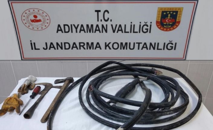 Jandarma ekipleri yaptıkları araştırmada belirlenen adrese operasyon düzenleyerek F.B., M.B. ve T.B.’yi kablo hırsızlığı yaparken suçüstü yakaladı.