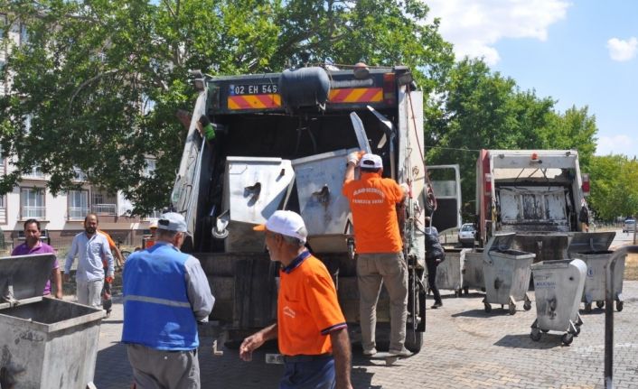 Adıyaman’ın Gölbaşı Belediyesi Temizlik İşleri Müdürlüğü tarafından çevre ve halk sağlığı açısından kentin cadde ve sokaklarında gerçekleştirilen çöp konteynerlerinin dezenfekte çalışmaları sürüyor.