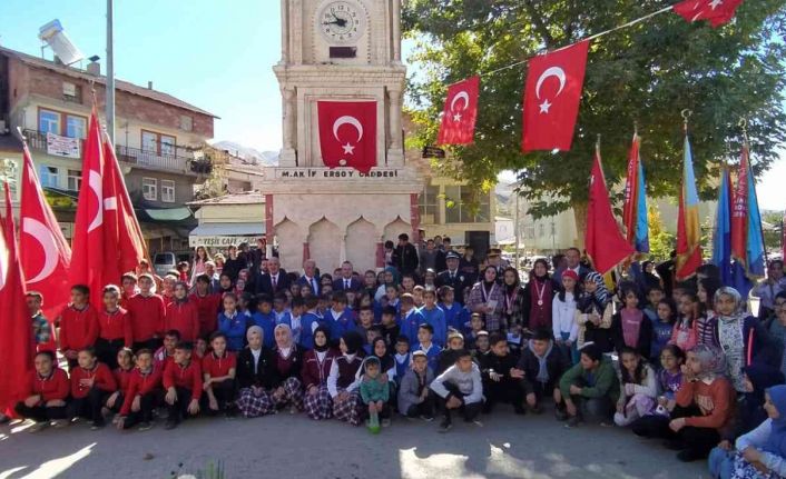 Saydı duruşu ve İstiklal Marşının ardından Kaymakam Arslantürk ve Belediye Başkan vekili Yusuf Kenan Acar, öğrencilerin ve vatandaşların Cumhuriyet Bayramı’nı kutladı.